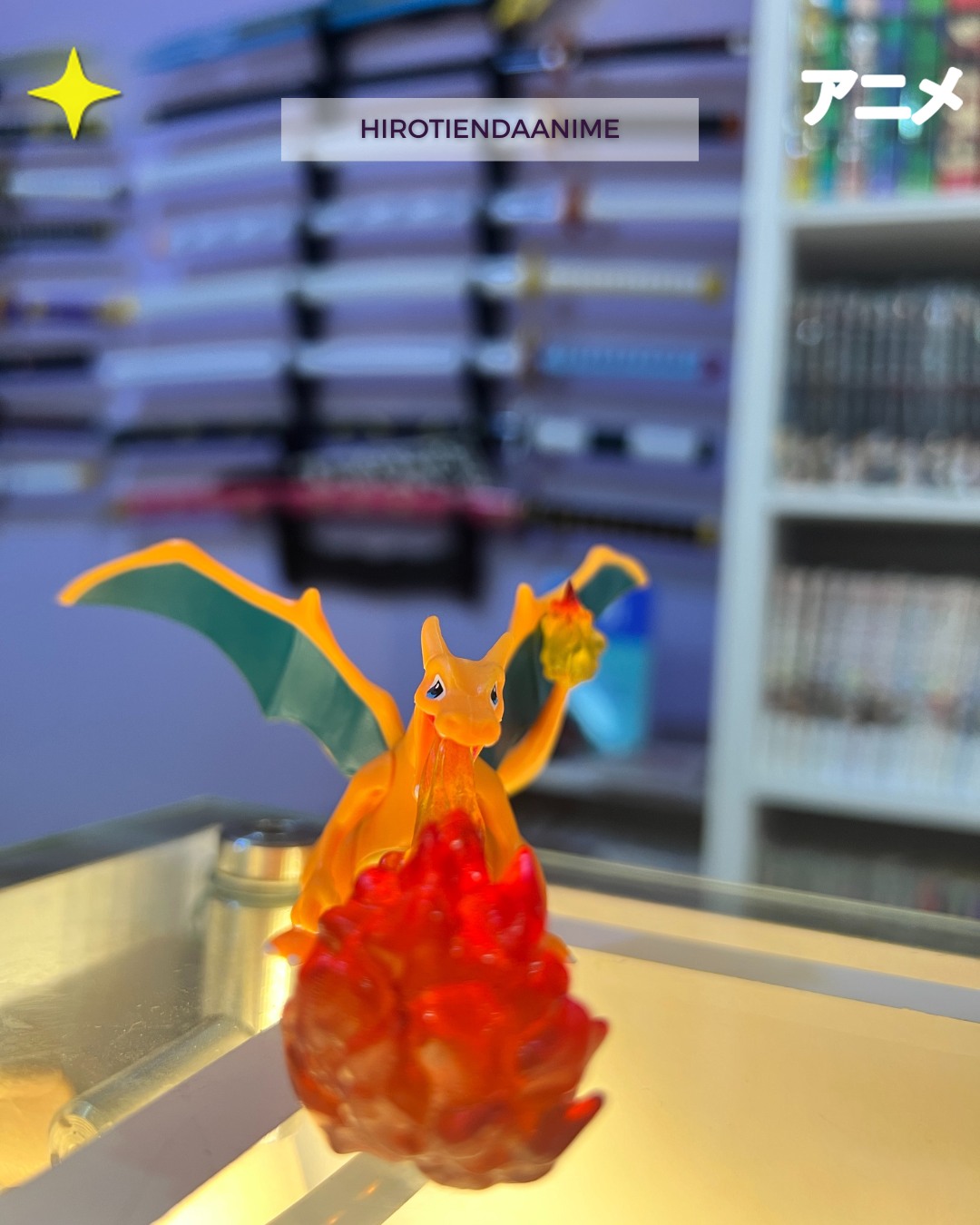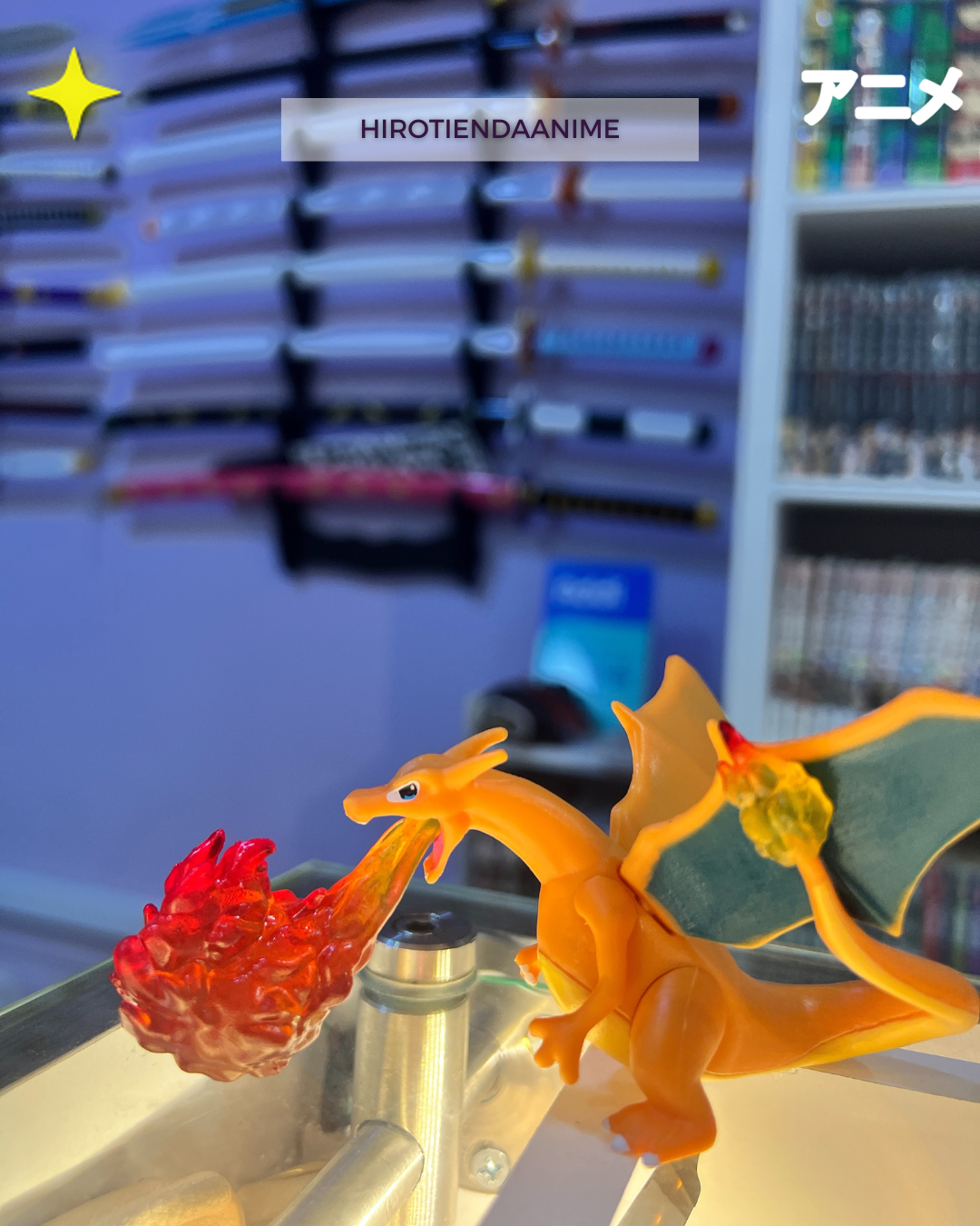 ¡Enciende la pasión por Pokémon con esta espectacular figura de Charizard lanzando una potente llamarada! Directamente del icónico universo Pokémon, esta impresionante pieza captura al poderoso Pokémon de tipo Fuego/Volador en plena acción, exhalando su fuego característico con una intensidad que se refleja en el efecto translúcido y vibrante.