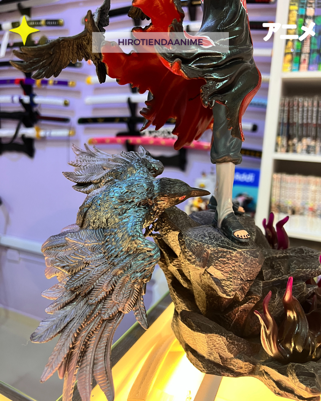 ¡Prepárate para sentir el poder con esta magnífica figura de Itachi Uchiha! Esta pieza de coleccionista captura a Itachi en una pose dominante y llena de intención, ataviado con su inconfundible capa de Akatsuki que ondea dramáticamente.