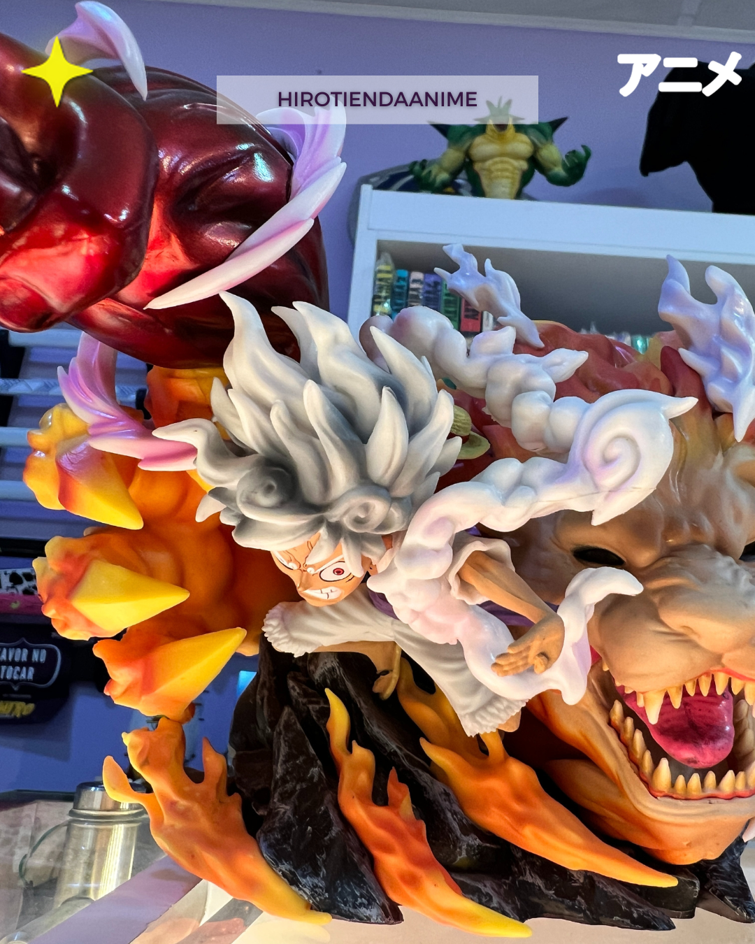 El nivel de detalle es asombroso: desde la expresión enloquecida y liberadora de Luffy, hasta los efectos de llamas, la masa muscular del puño y la base rocosa destrozada por la potencia del ataque. Es una obra de arte que encapsula toda la energía, la escala y la emoción del “Guerrero de la Liberación”.