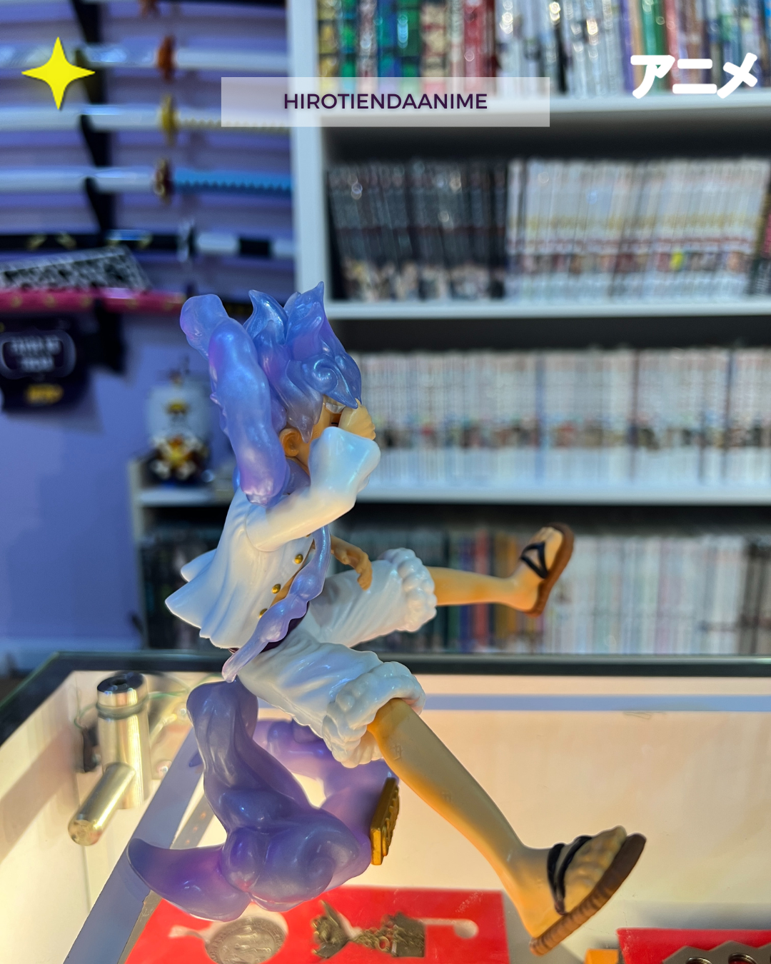 La base, con el logo “GEAR 5”, complementa perfectamente esta pieza de colección que irradia la libertad y el espíritu indomable del capitán de los Piratas del Sombrero de Paja. Es ideal para los fans que adoran el lado más irreverente y poderoso de Luffy.