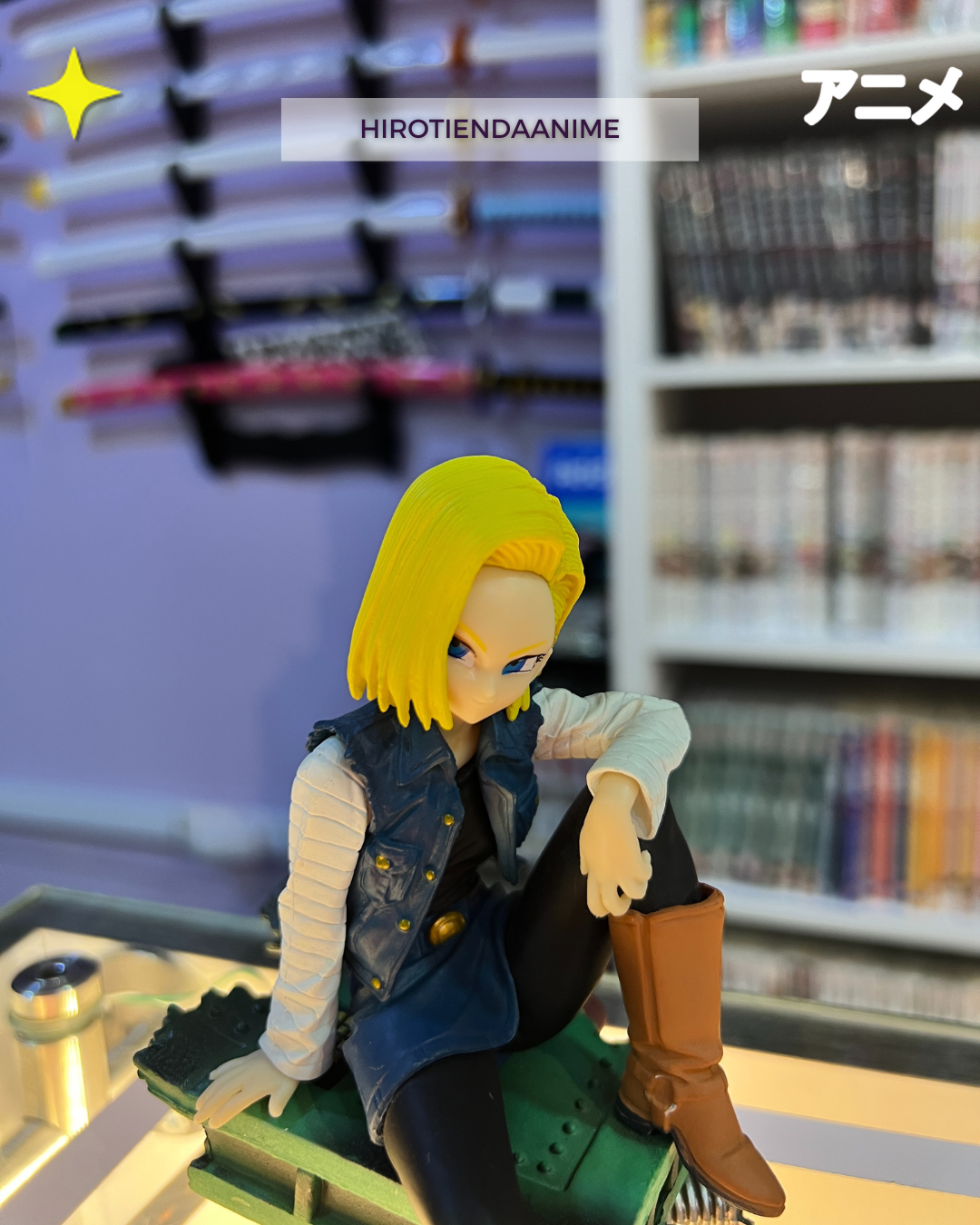 ¡Añade un toque de intriga y estilo a tu colección con esta figura de Androide 18! Capturando a la poderosa guerrera en una pose relajada pero alerta, esta pieza presenta a la Androide sentada casualmente sobre un elemento mecánico.
