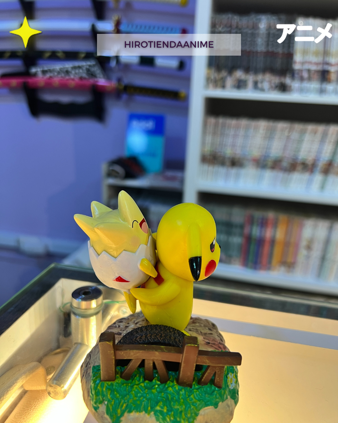 ¡Celebra la amistad icónica con esta adorable figura de Pikachu cargando a Togepi! Esta tierna pieza de colección captura un momento conmovedor con Pikachu, el rostro de Pokémon, llevando al pequeño y dulce Togepi en su espalda.