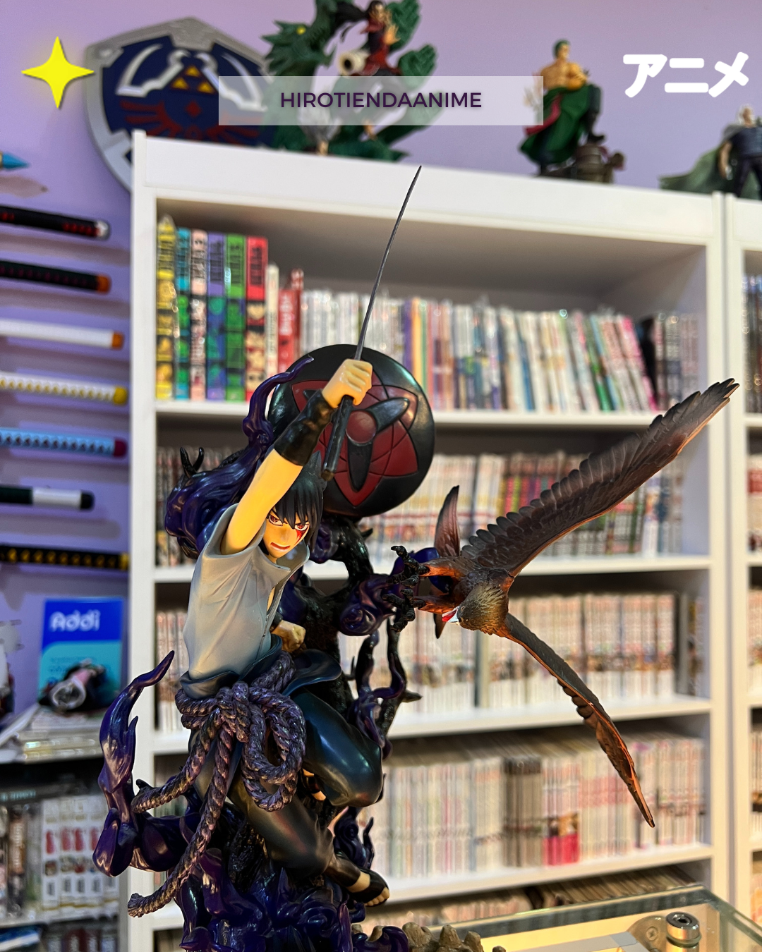 - Diseño Dinámico: Captura a Sasuke en pose de combate con su katana.