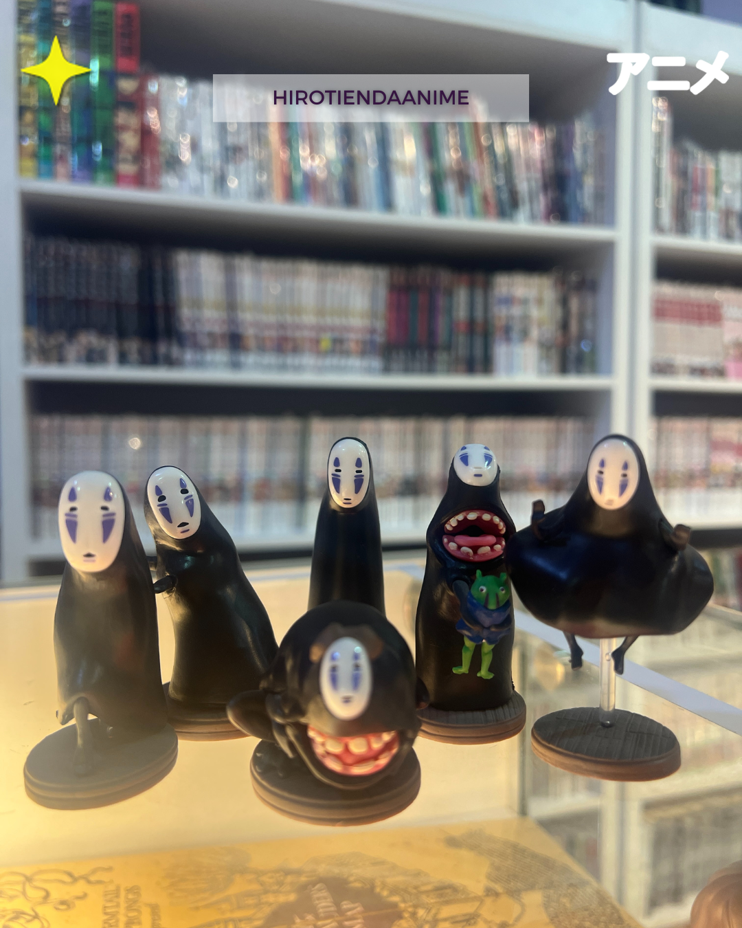 - Varias figuras de Kaonashi en su forma original, con su cuerpo oscuro y máscara blanca, que evocan su presencia misteriosa y solitaria. Algunas con poses ligeramente diferentes, invitando a la reflexión.